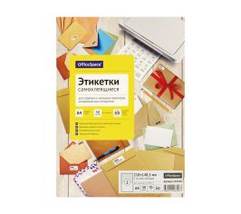 Этикетка самоклеящаяся 210х57 мм, 5 этикеток, белая, для папок-регистраторов, 70 г/м2, 50 листов, LO