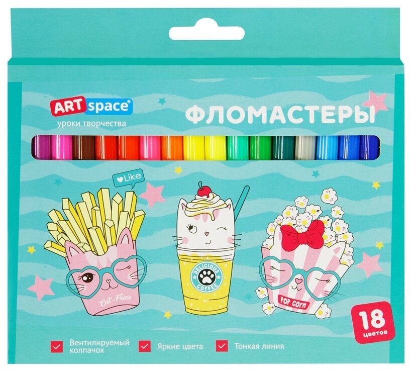 Каталог / ШКОЛА, ТВОРЧЕСТВО, ХОББИ / Фломастеры / 18 цветов