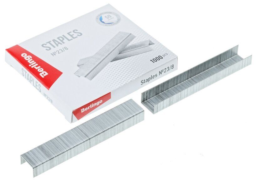 Berlingo Скобы для степлера №23/8 оцинкованные, 1000 шт серебристый
