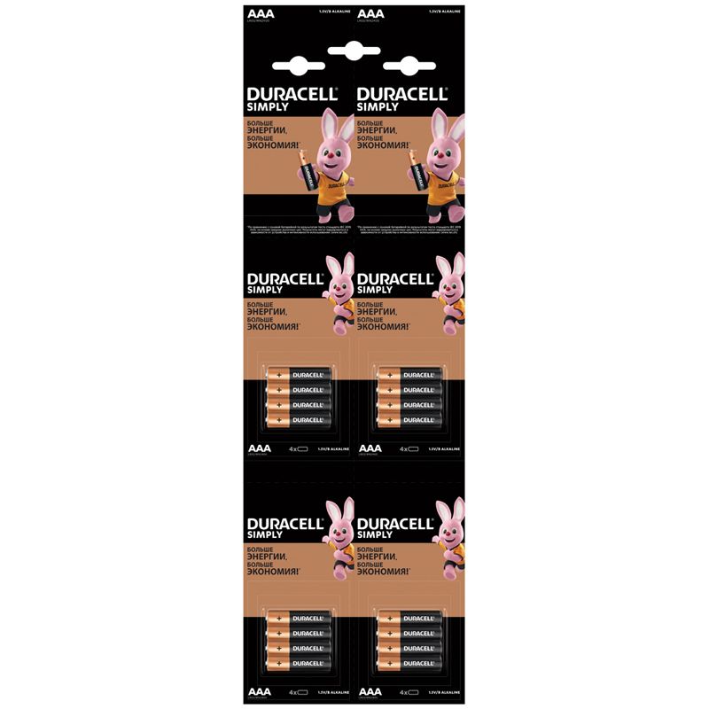 Батарейка Duracell Simply AAA (LR03) алкалиновая, 4х4BL, отрывной набор