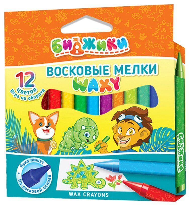 БИДЖИКИ Восковые мелки Waxy, 12 шт