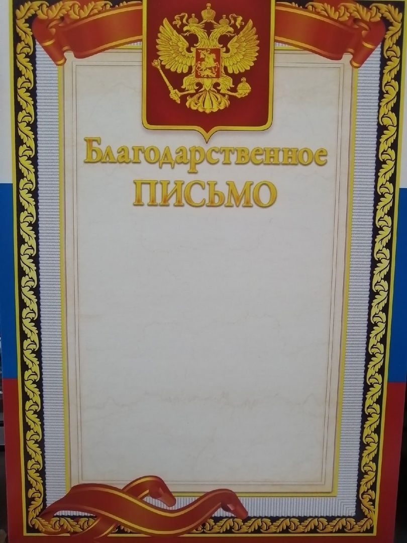 Благодарственное письмо стандарт с госсимволикой