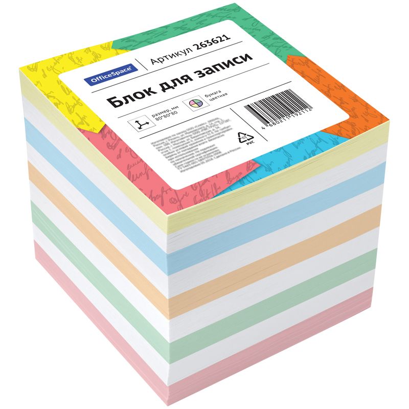 Блок для записей OfficeSpace, 8*8*8см, цветной
