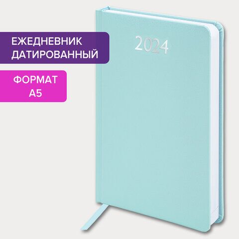 Ежедневник датированный 2024 А5 138x213 мм BRAUBERG «Profile», балакрон, мятный