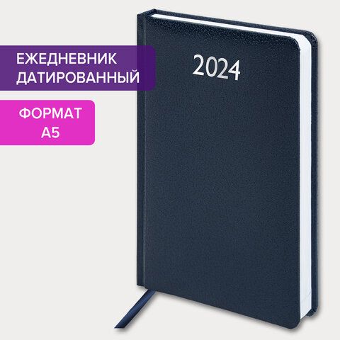 Ежедневник датированный 2024 А5 138x213 мм BRAUBERG «Profile», балакрон, синий