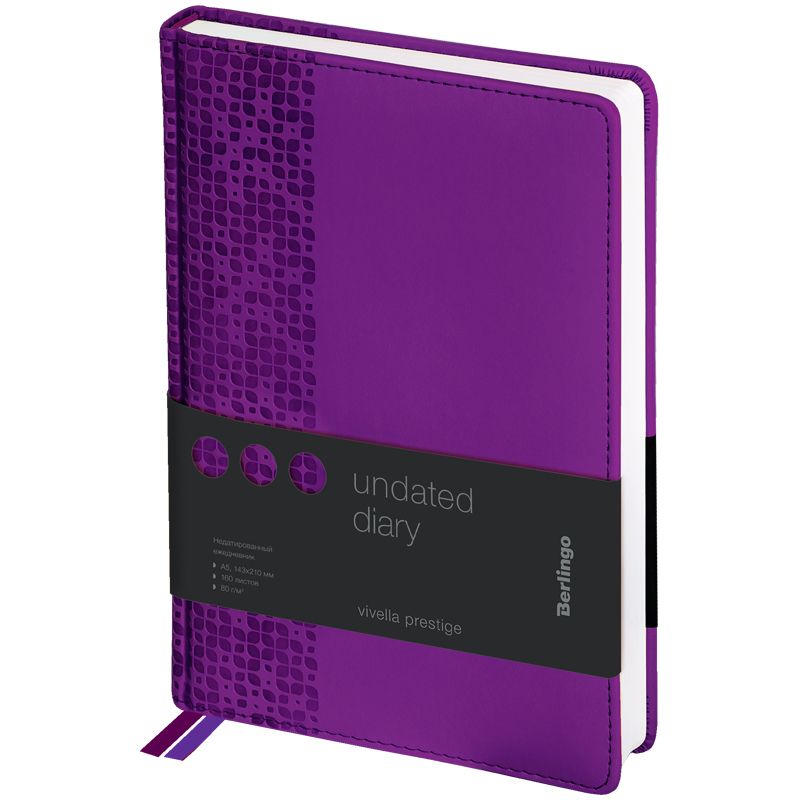Ежедневник недатир. А5, 160л., кожзам, Berlingo «Vivella Prestige», фиолетовый