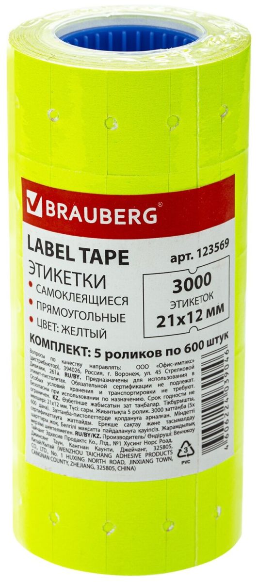 Этикет-лента BRAUBERG 123569/123570/123571, 5x600 шт.