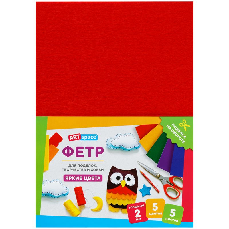Фетр ArtSpace, А4, 5л., 5цв., 2мм, интенсив