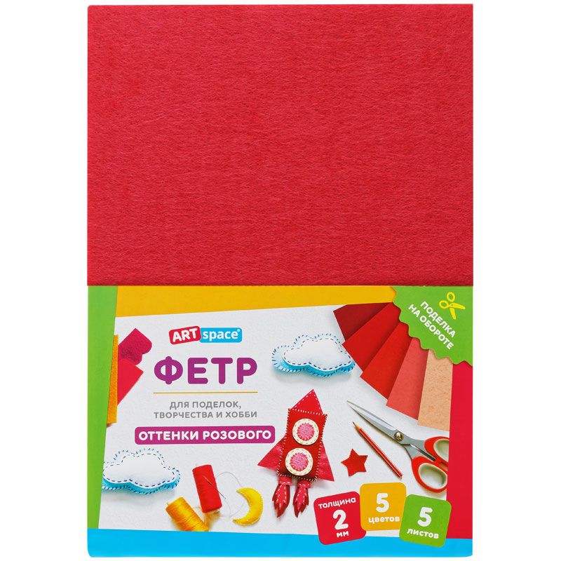 Фетр ArtSpace, А4, 5л., 5цв., 2мм, оттенки розового