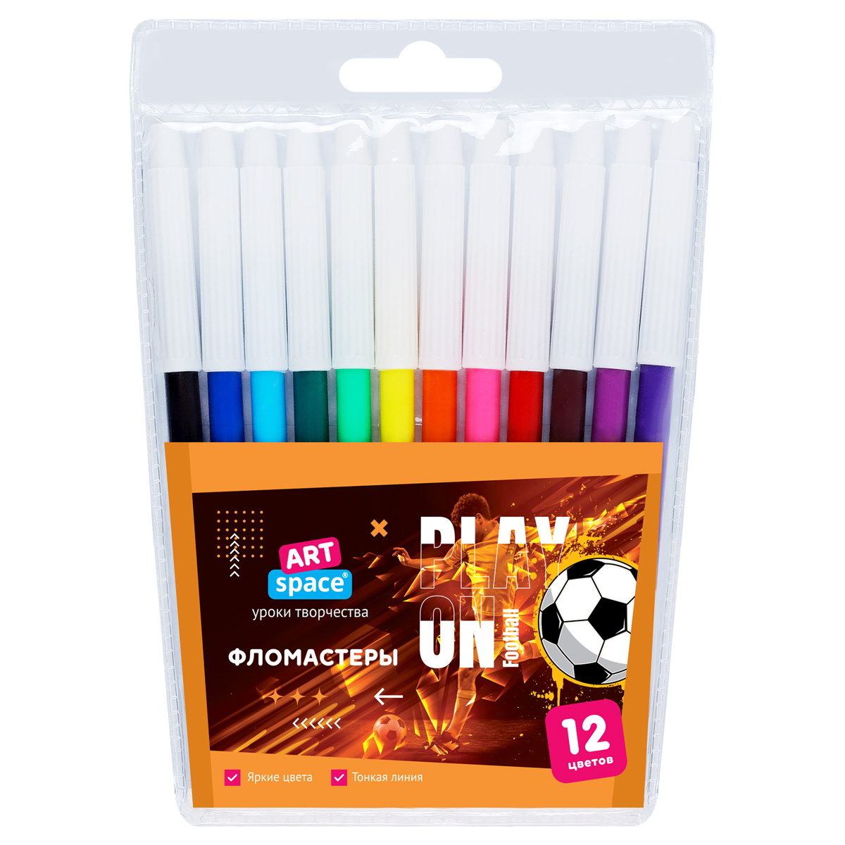 Фломастеры ArtSpace «Футбол», 12цв., ПВХ, европодвес WP 92102