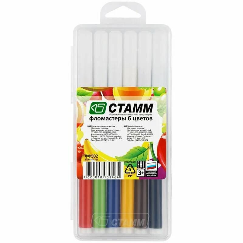 Фломастеры СТАММ «Летние фрукты», 06цв., смываемые, пластик. пенал, европодвес