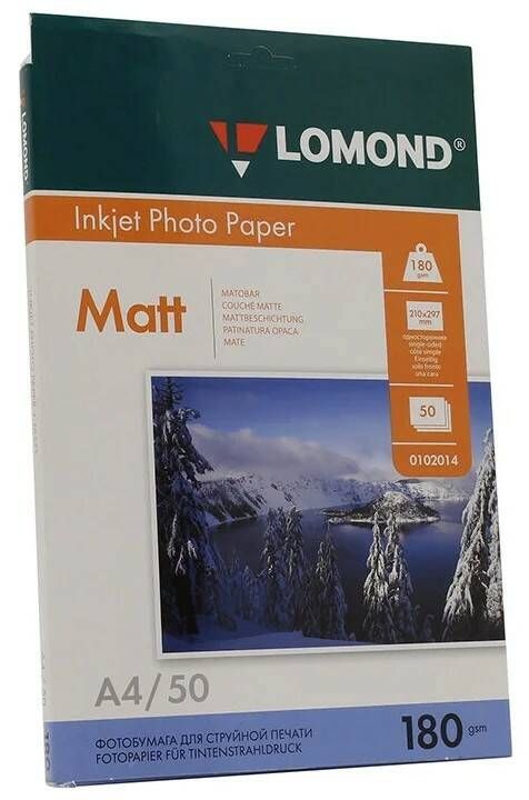 Читать все статьиФотобумага LOMOND A4, 180г/м2, 50л мат.