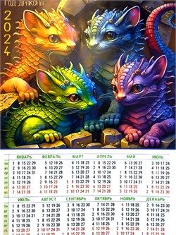 Календарь-плакат А3 2024 символ года дракон