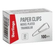 Berlingo Скрепки 32мм, Berlingo, 100шт., никелированные треугольные, с отогнутым носиком