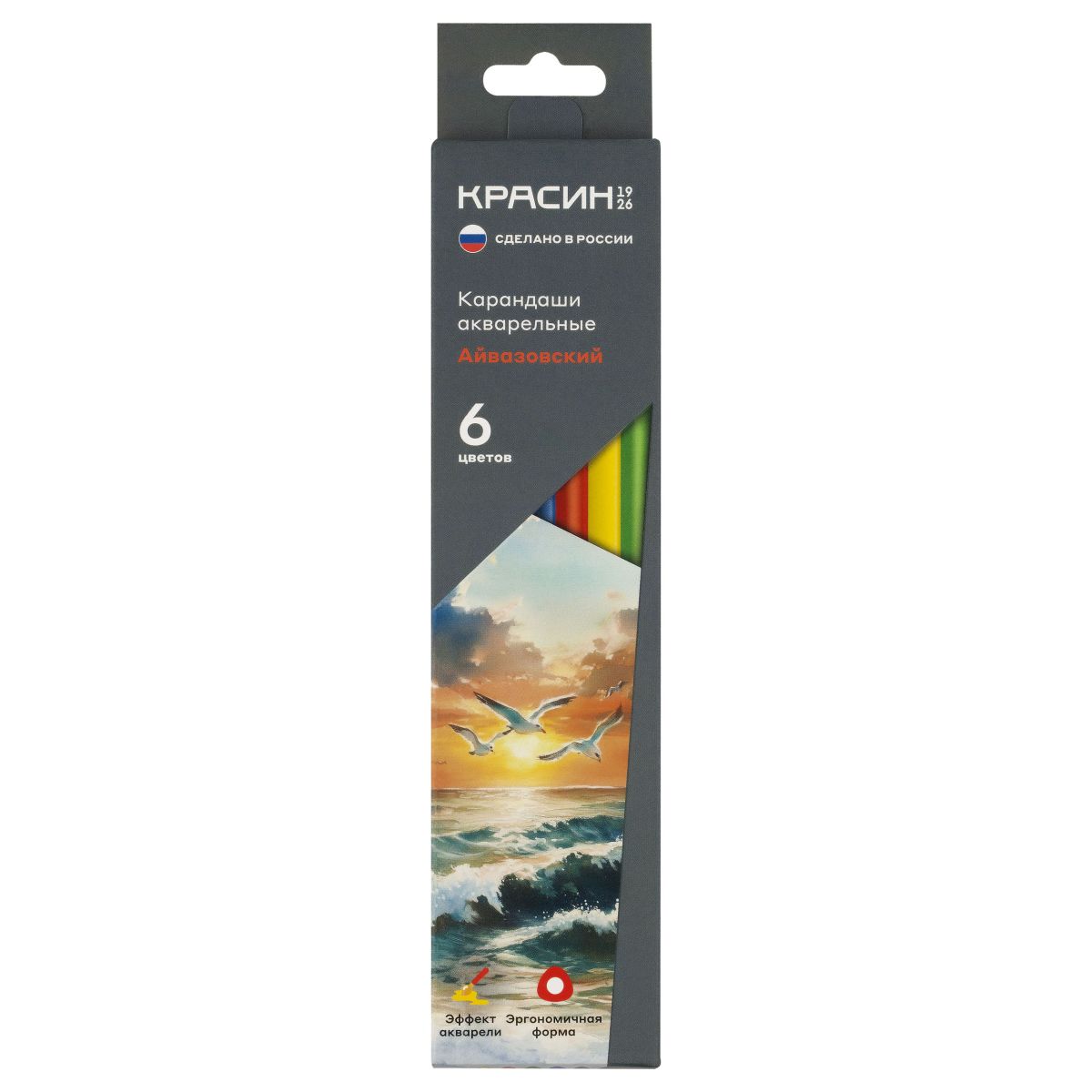 Карандаши акварельные Красин «Айвазовский», 06цв., трехгран., заточен., картон, европодвес