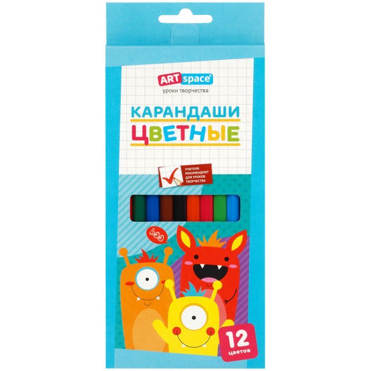 Карандаши цветные ArtSpace «Монстрики», 12цв., заточен., картон, европодве.325677