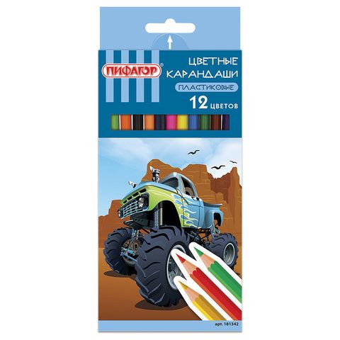 Карандаши цветные ПИФАГОР «ДЖИП», 12 цветов, пластиковые, классические, заточенные