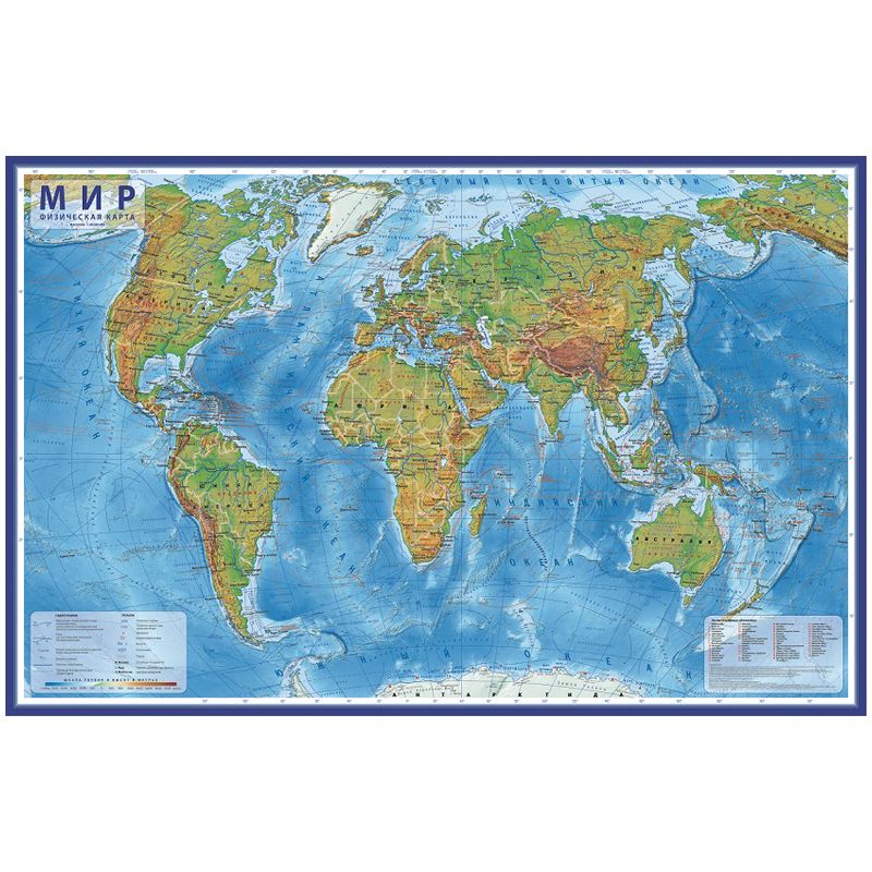 Карта «Мир» физическая Globen, 1:29млн., 1010*660мм, интерактивная, европодвес