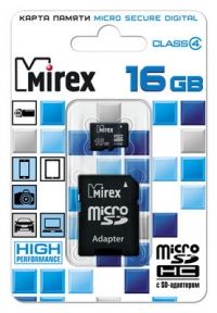 Карта памяти 16G Mirex MicroSD +(адаптер SD) Class 10