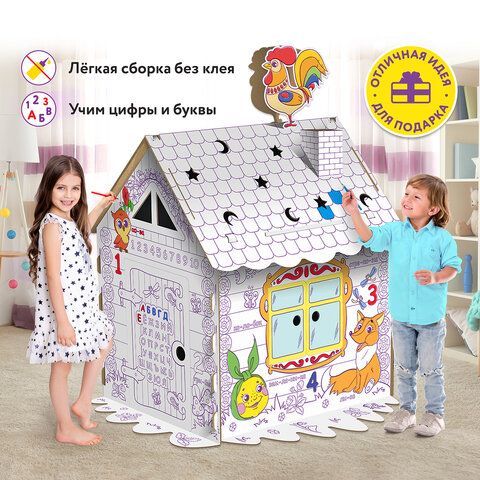 Картонный игровой развивающий домик-раскраска «Развивающий», высота 130 см, ЮНЛАНДИЯ