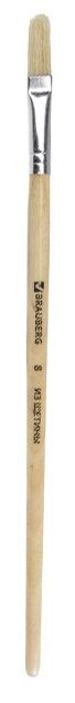 Кисть BRAUBERG щетина №8, плоская, с длинной ручкой натуральный