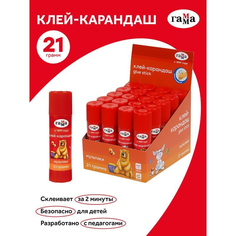 Читать все статьиКлей-карандаш Гамма «Мультики», 21г, ПВП
