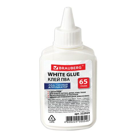 Клей ПВА BRAUBERG (бумага, картон, дерево), 65 г