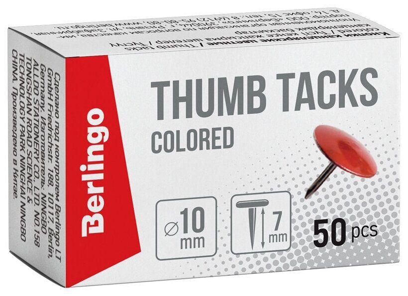 Кнопки канцелярские/гвоздики Berlingo, цветные 10мм, 50шт., карт. упак.