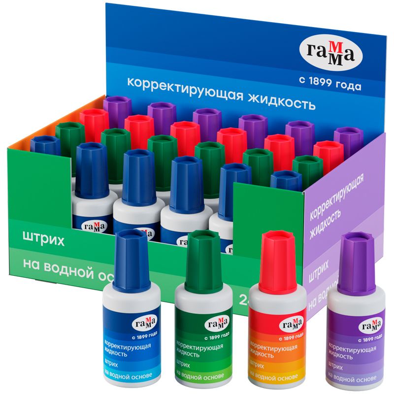Корректирующая жидкость Гамма «Штрих», 20мл, с кисточкой, шоубокс