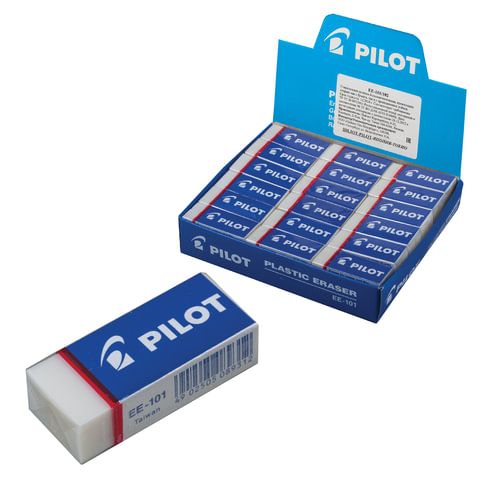 Ластик PILOT, 45х20х12 мм, прямоугольный, белый, картонный держатель