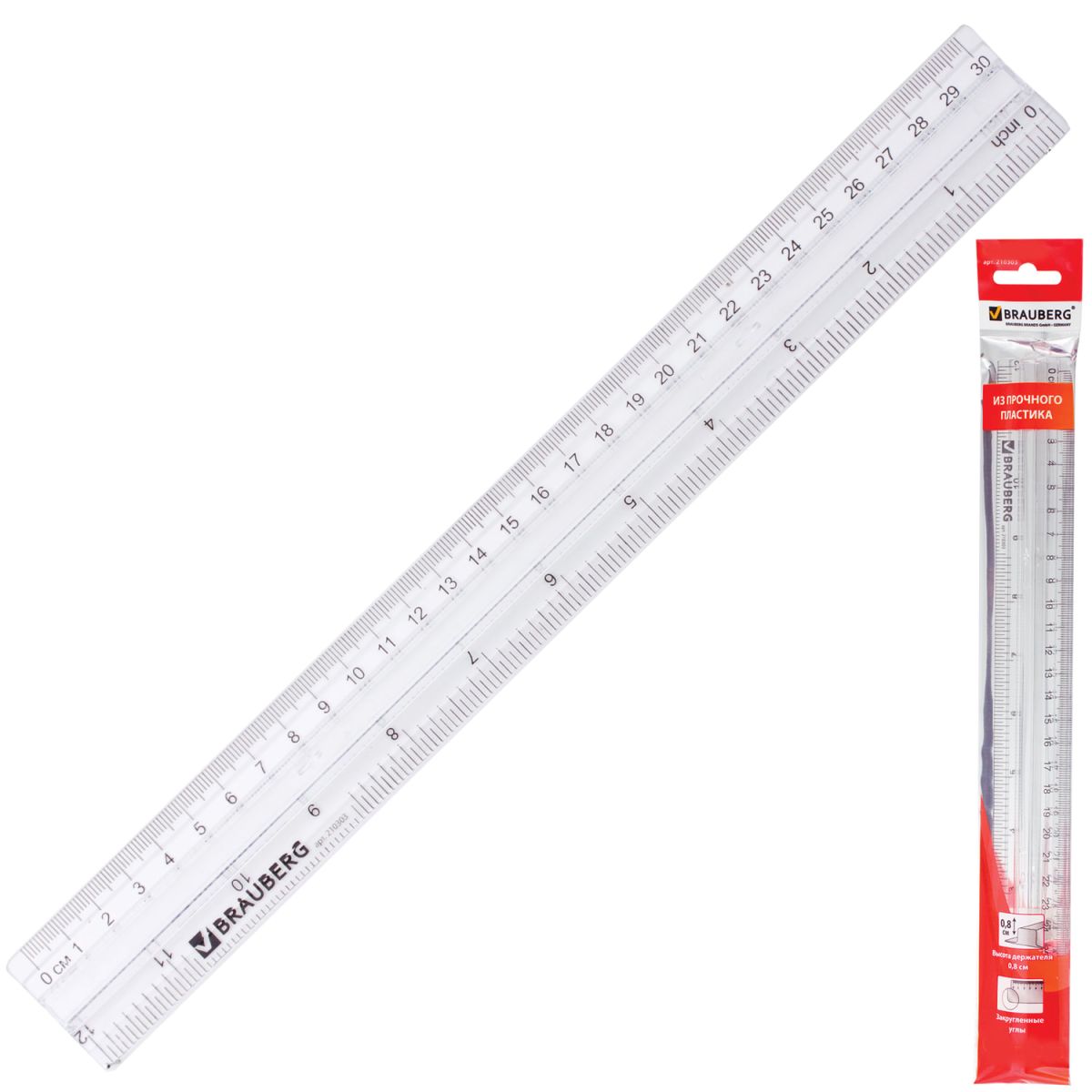 Линейка пластиковая 30 см, BRAUBERG, с держателем, прозрачная, европодвес, 210303