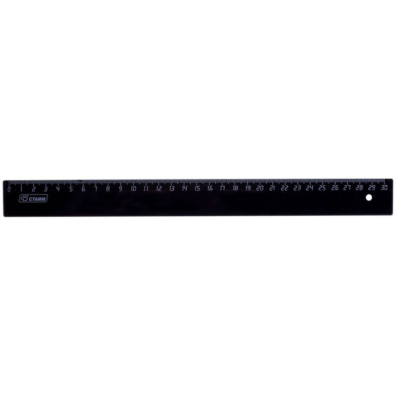 Линейка пластиковая 30 см, СТАММ, непрозрачная, черная, ЛН35