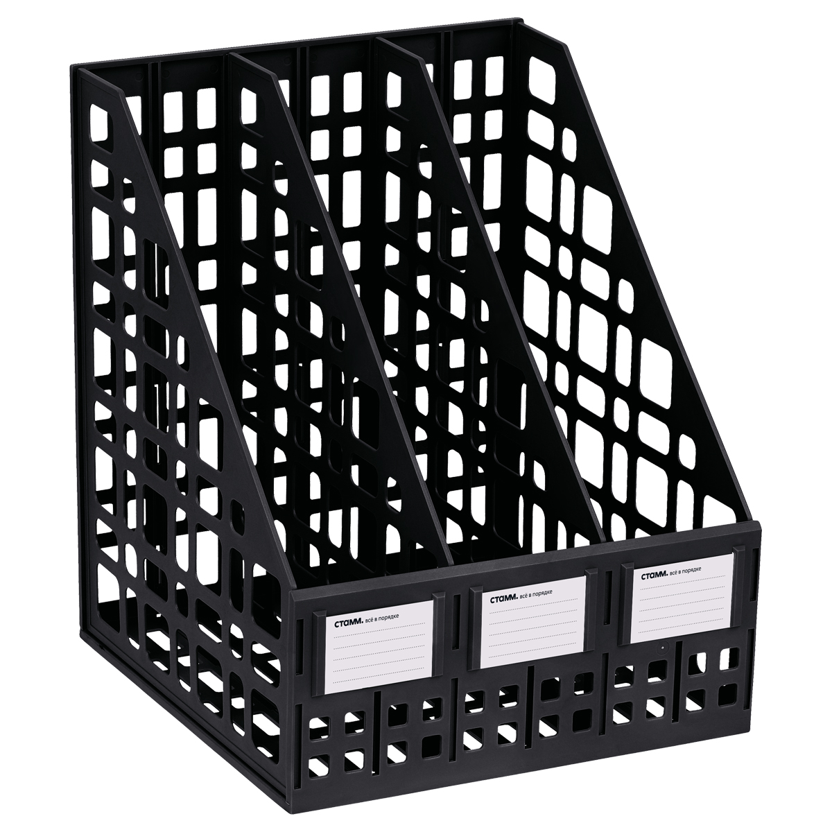 Лоток для бумаг вертикальный СТАММ, сборный, 3 отделения, черный