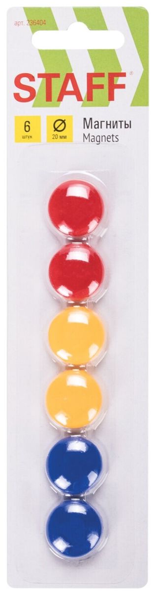 Магнит для досок OfficeSpace 20мм, 6шт., ассорти, блистер, европодвес