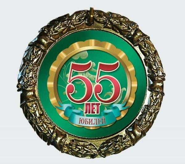 МЕДАЛЬ металл наградная 70 мм.на ленте 55 лет юбилей