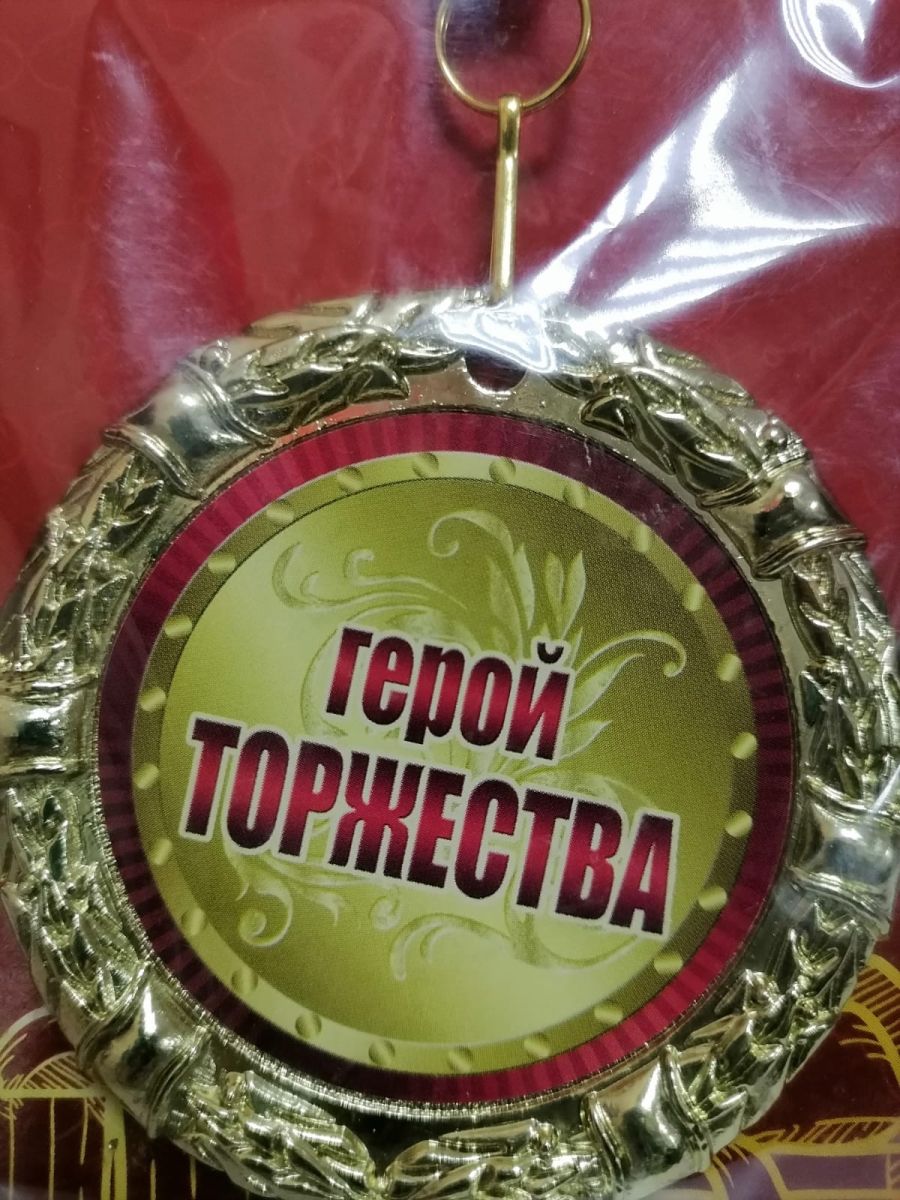 МЕДАЛЬ металл наградная 70 мм.на ленте Герой торжества,