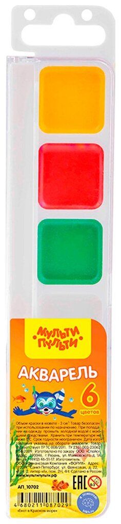 Мульти-Пульти Акварель Енот в Красном море 6 цв.