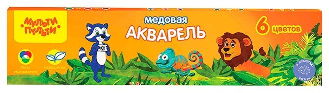 Мульти-Пульти Акварель медовая Енот в джунглях, 6 цв.