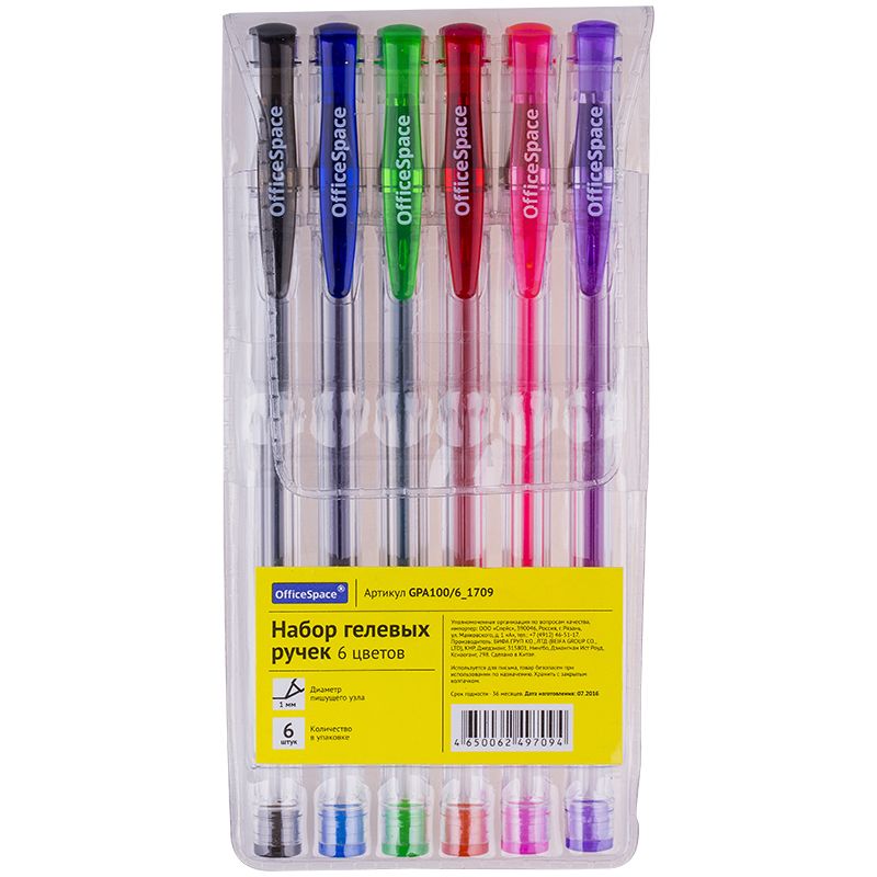 Набор гелевых ручек OfficeSpace 06цв., 1,0мм, европодвес