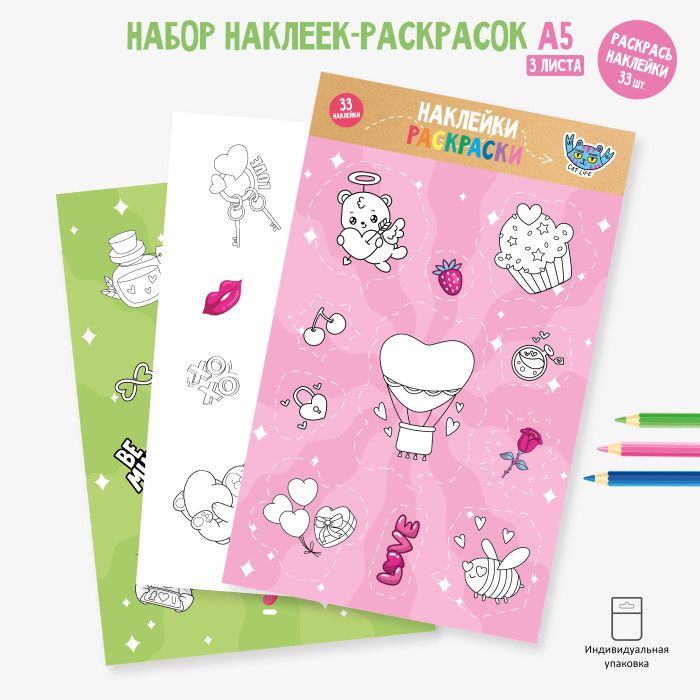 Набор наклеек-раскрасок А5 любовь