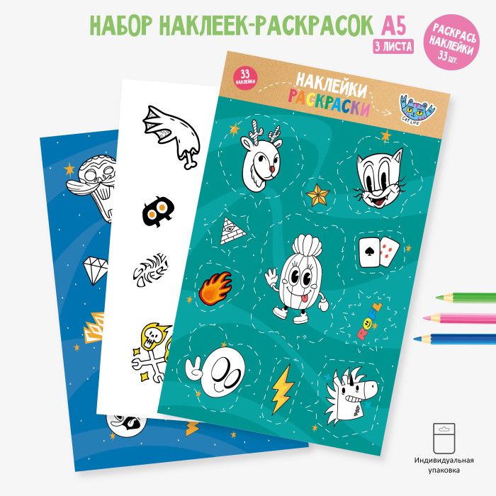 Набор наклеек-раскрасок А5 тату (мальчики)