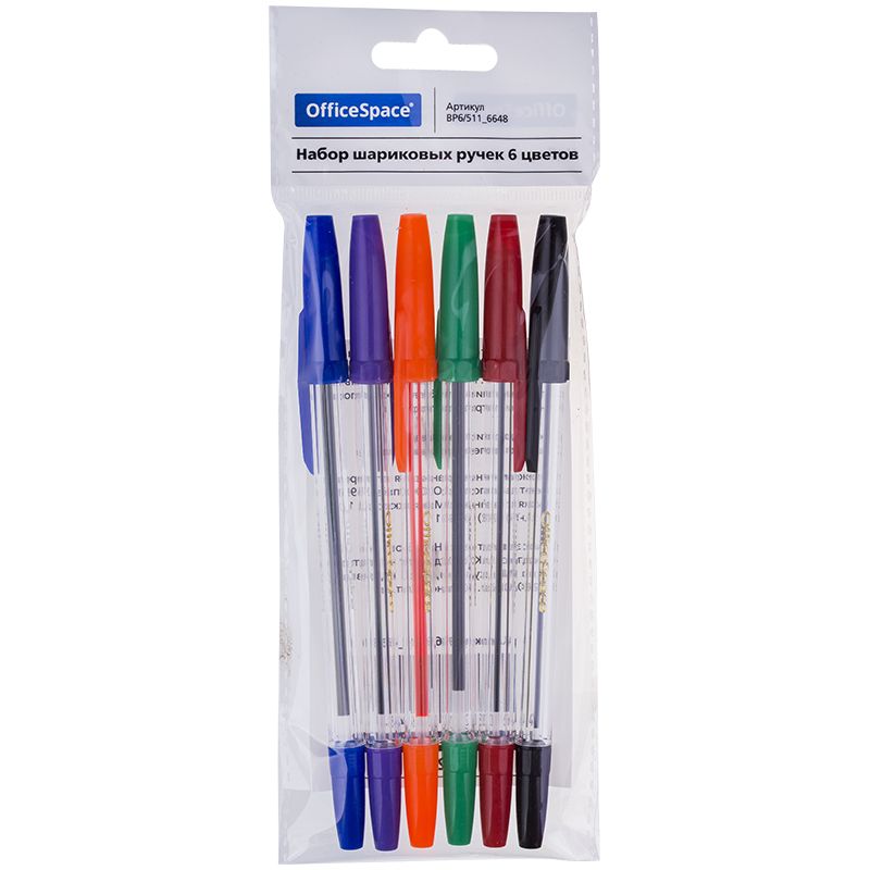 Набор шариковых ручек OfficeSpace, 6шт., 6цв., 1,0мм, европодвес
