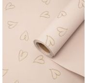 Пленка матовая 58см х 10м, двусторонняя, Сердечки, кремовая, 65мкр
