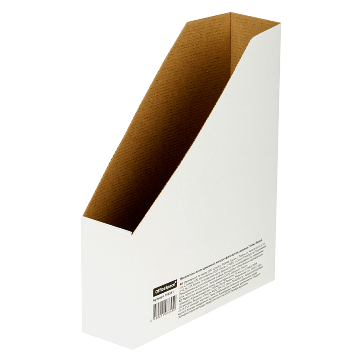 Накопитель-лоток архивный из микрогофрокартона OfficeSpace, 75мм, белый, до 700л.