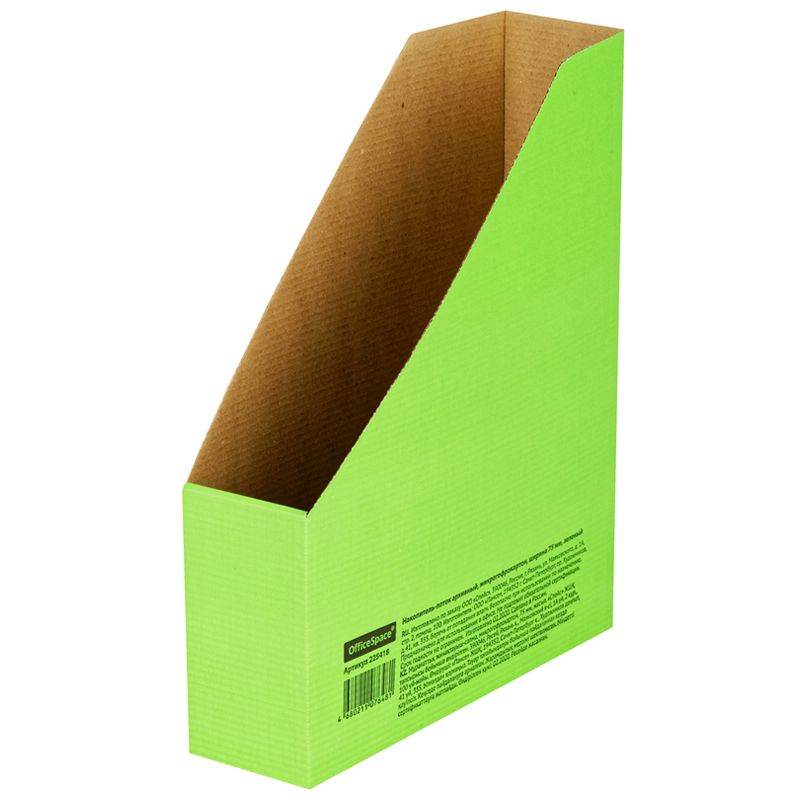 Накопитель-лоток архивный из микрогофрокартона OfficeSpace, 75мм, зеленый, до 700л.