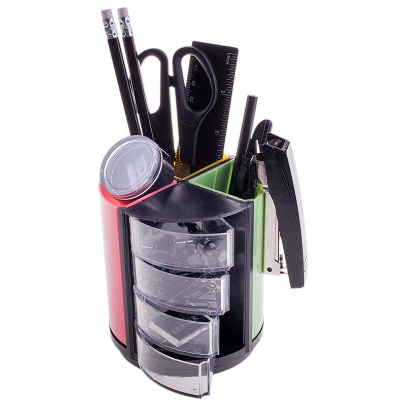 Настольный органайзер OfficeSpace «Витраж», 11 предметов, вращающийся, черный/цветной