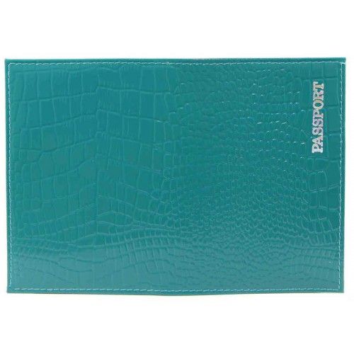 Обложка д/паспорта нат.кожа крокодил бирюза