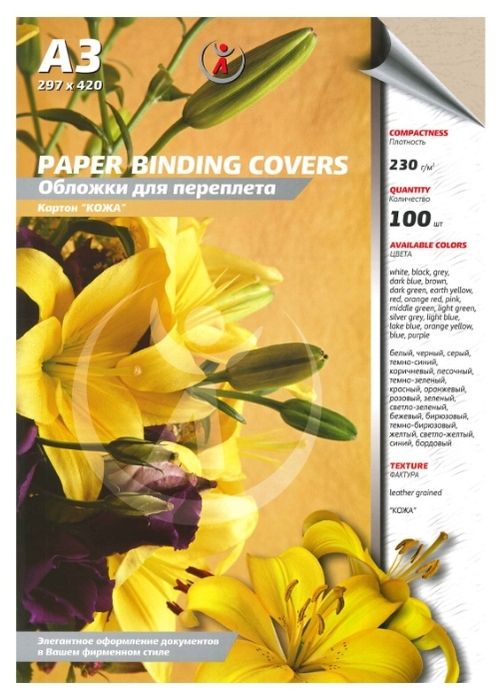 Обложки для переплета картонные, текстура: кожа, 230г/м2, А4, белые