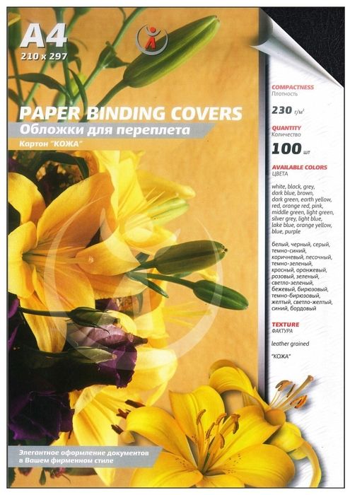 Обложки для переплета картонные, текстура: кожа, 230г/м2, А4, черные