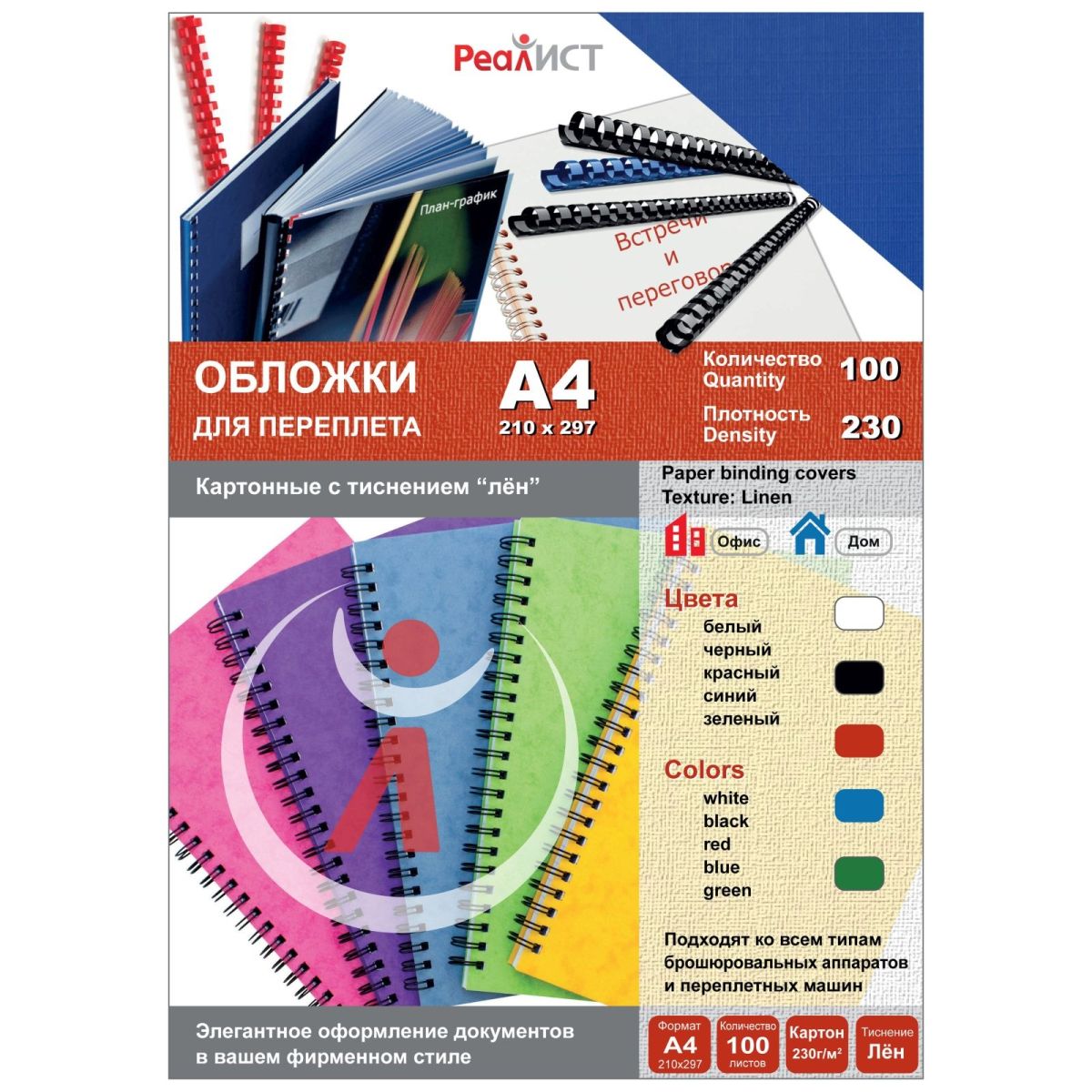 Обложки для переплета картонные, текстура лен, 230г/м2, А4, синий